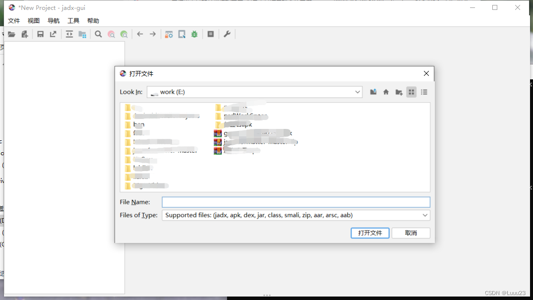 2.找到你安装的位置,打开jadx-gui,再选择需要打开的apk,就反编译完成了。