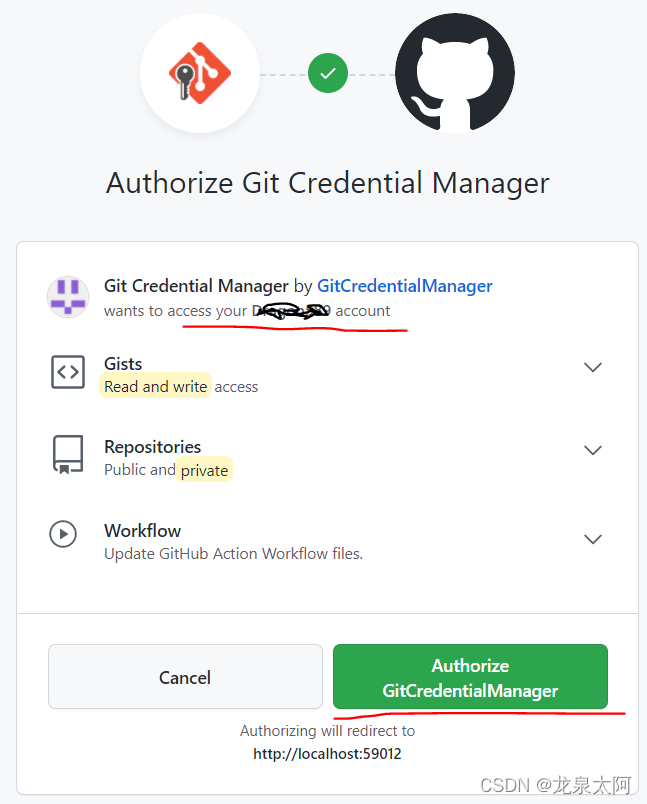 解除后再次执行“git push -u origin master”命令,弹出如下登录验证: