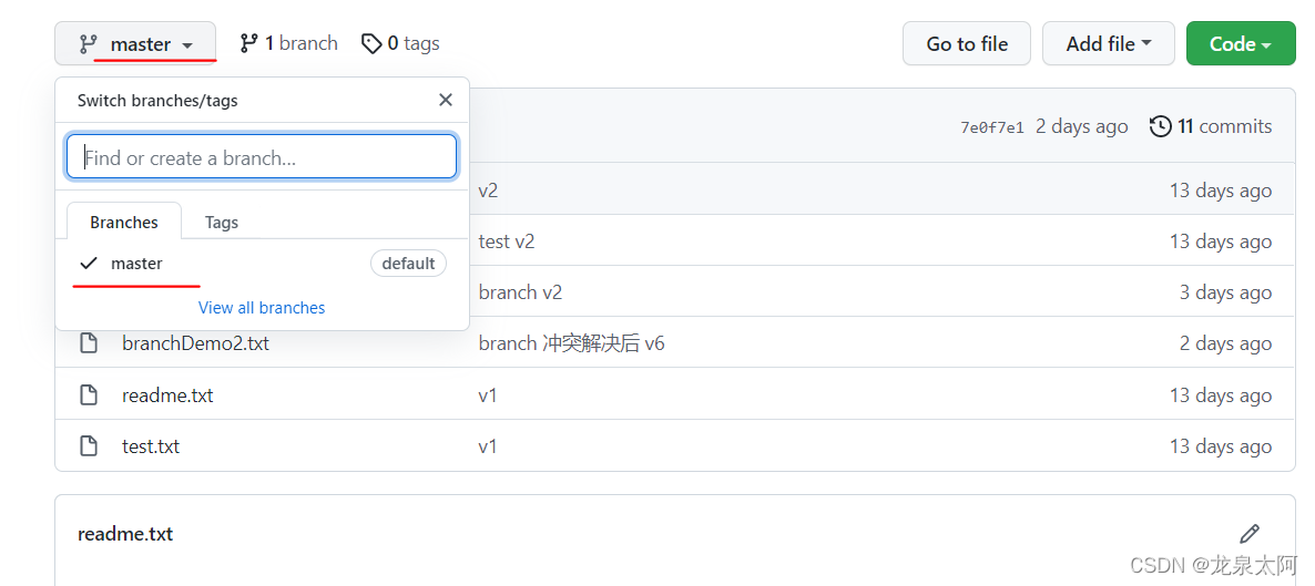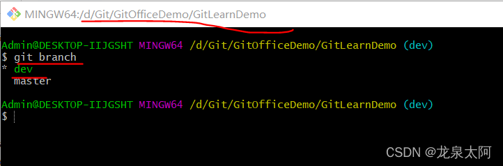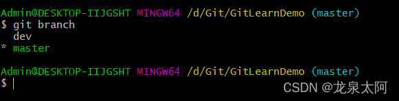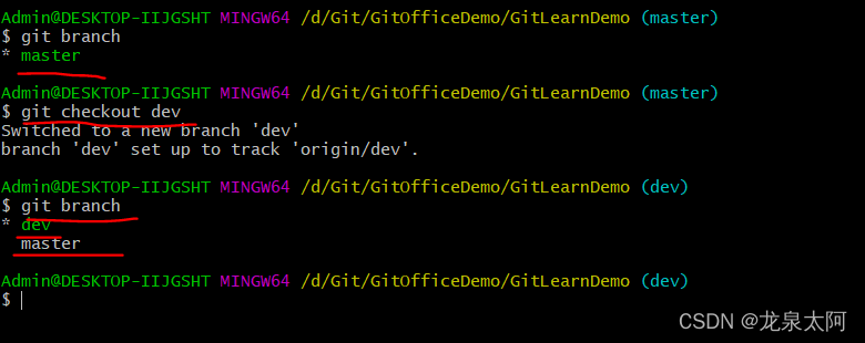 其实不是这样的,虽然我们只看到了一个分支,但其实dev分支也克隆下来了,可以直接切换到dev分支看一下: