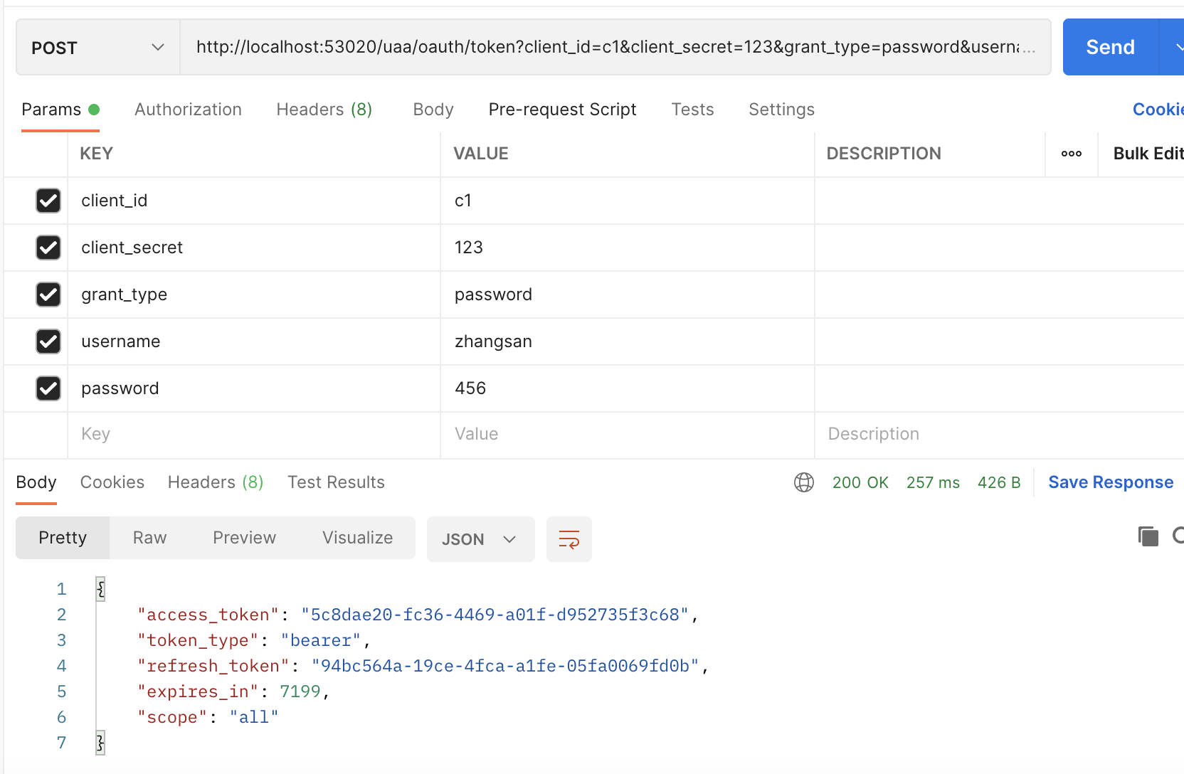 - /uaa/oauth/token?client_id=c1&client_secret=secret&grant_type=password&username=shangsan&password=123