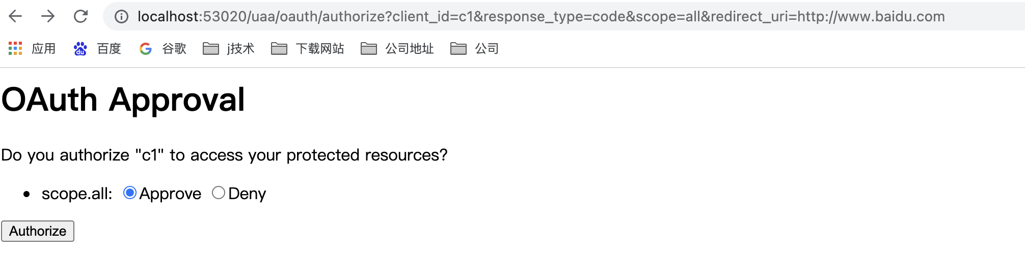 - /uaa/oauth/authorize?client_id=c1&response_type=code&scope=all&redirect_uri=http://www.baidu.com