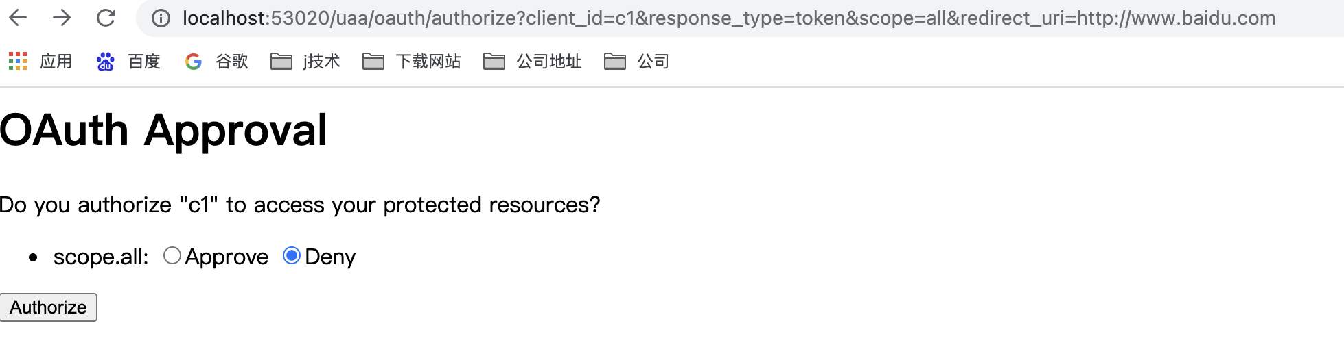 - /uaa/oauth/authorize?client_id=c1&response_type=token&scope=all&redirect_uri=http://www.baidu.com