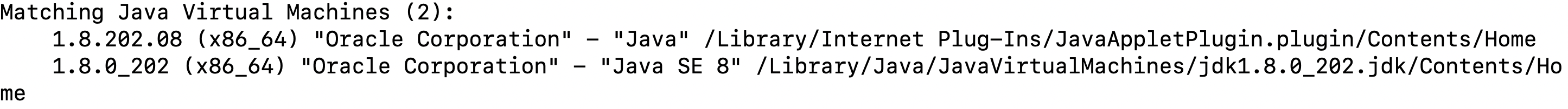 export JAVA_HOME=/Library/Java/JavaVirtualMachines/jdk1.8.0_202.jdk/Contents/Home