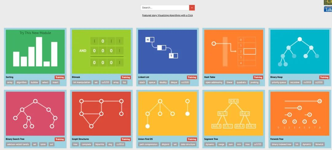 上次(2020-12)给大家推荐了一个可视化算法的网站。今天给大家介绍一个 功能更全面的网站,不仅可以可视化算法,还提供了大量数据结构的可视化。