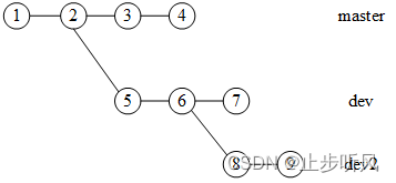 git commit -m "commit file7"git branch dev HEAD^git checkout devecho 8888 > file8