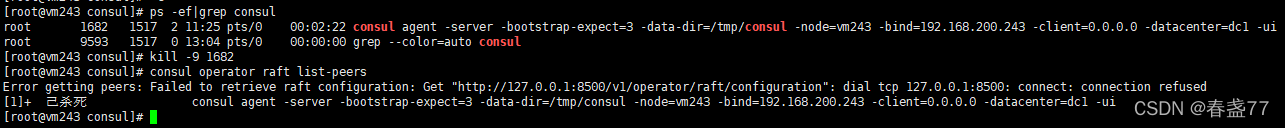kill三台虚拟机任意一台consul进程,这里kill leader 192.168.200.243