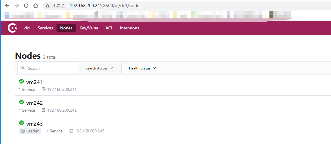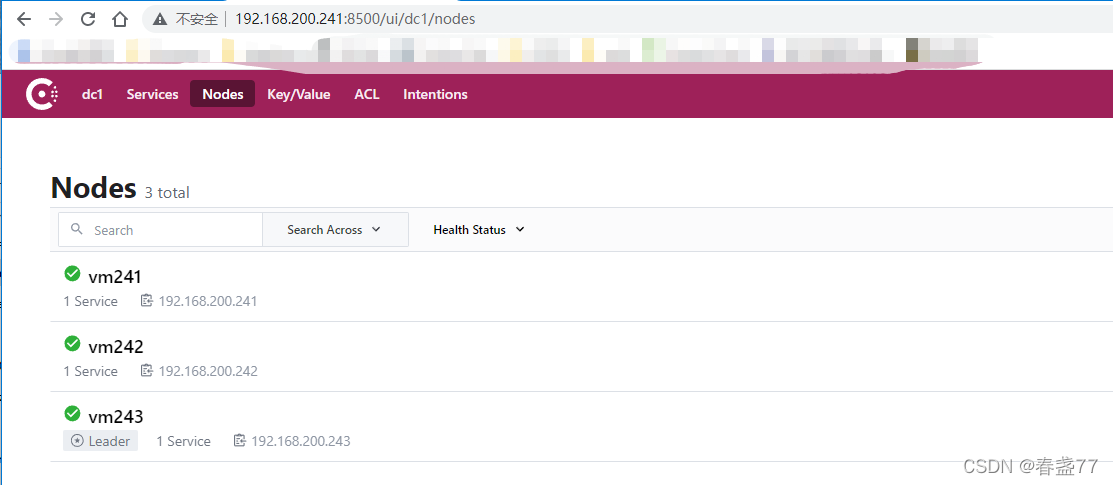 证明此时leader已经选出,集群可以正常工作。访问:http://192.168.200.241:8500/