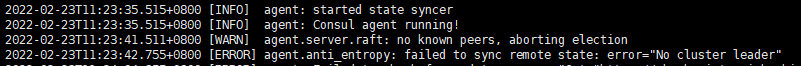 此时三台机器还未join,不能算是一个集群,三台机器上的consul均不能正常工作,因为leader未选出。