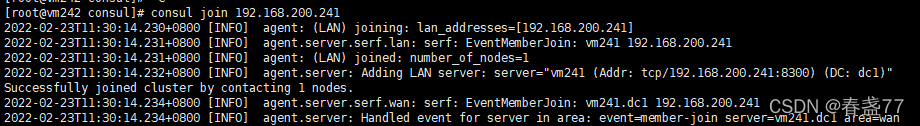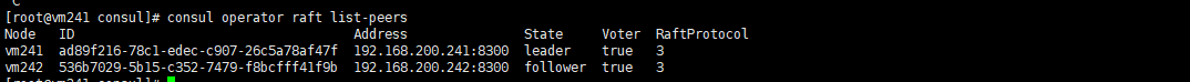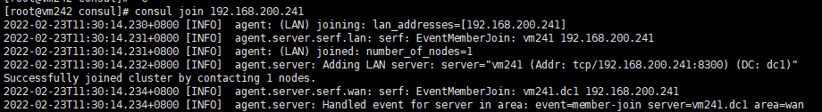 分别在vm242和vm243虚拟机上执行如下命令,让consul加入集群: