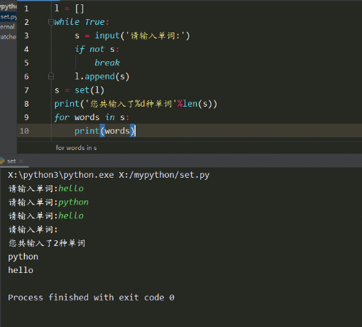 任意输入一个单词,存入集合中,当输入回车时,结束输入