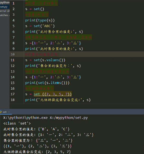 2、创建非空集合: s = {1,2,3} #集合中的三个整数:1,2, 3