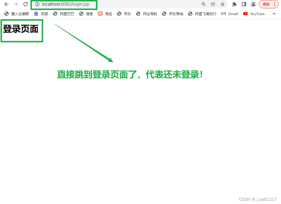 public class LoginController {/*** 登录方法* @param request* @return*/@RequestMapping("/login")public String login(HttpServletRequest request){//登录成功需要保存用户信息String uname = request.getParameter("uname");if("Leaf".equals(uname)){request.getSession().setAttribute("uname",uname);}return "index";}@RequestMapping("/logout")public String logout(HttpServletRequest request){request.getSession().invalidate();return "index";}}