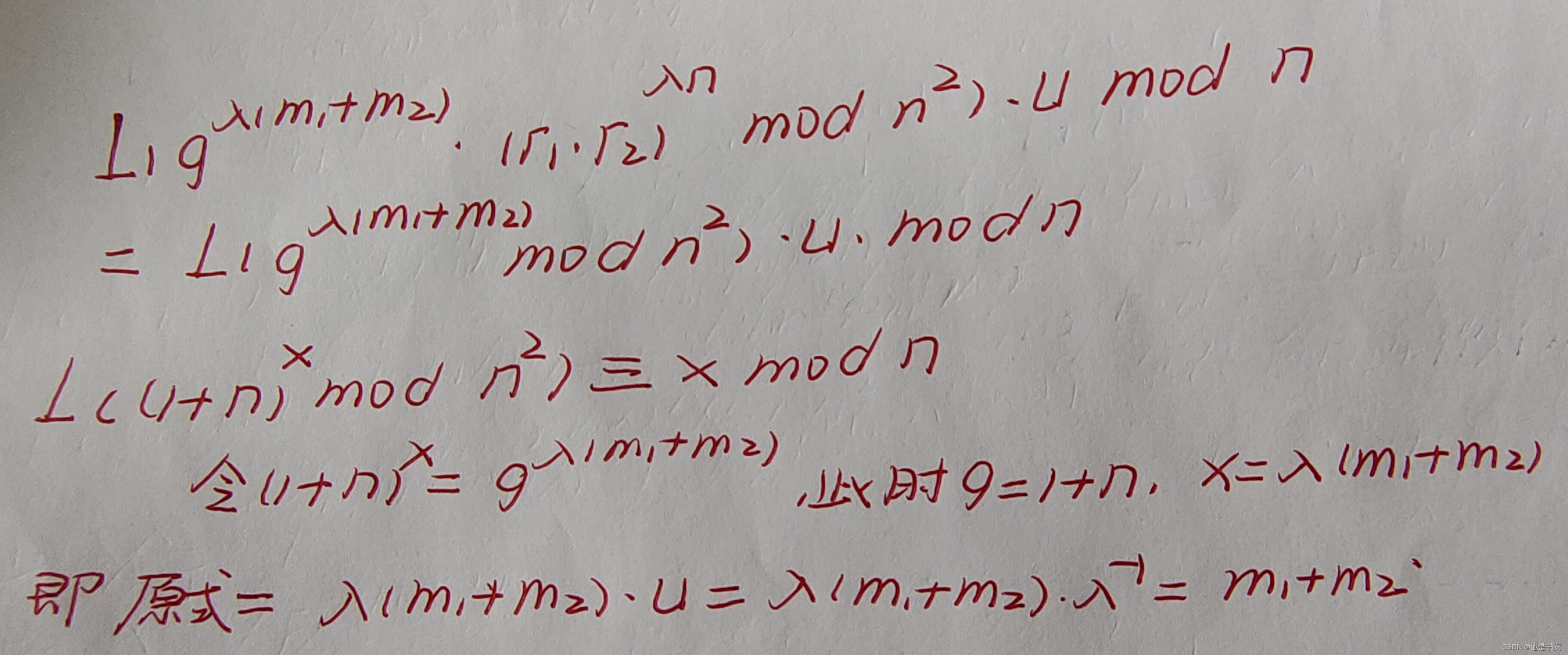 - 此时就可以计算加法的同态性了 证明过程如下,用到的公式是这两个