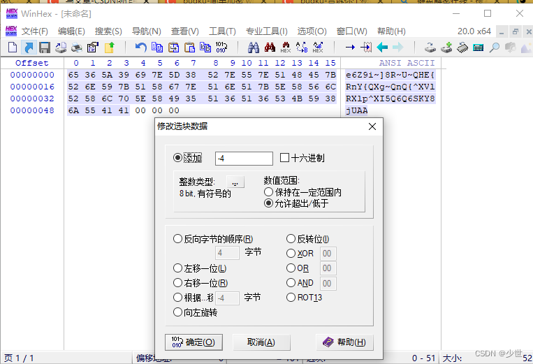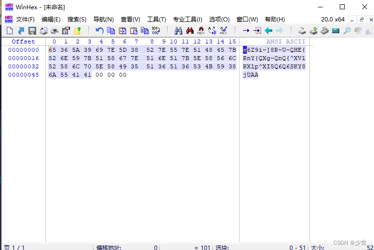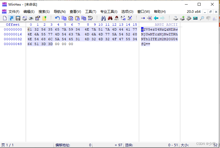 看了半天没发现有什么和flag扯上关系的字符,只好看看评论说的偏移量:将字符串复制到winhex里面设置偏移量