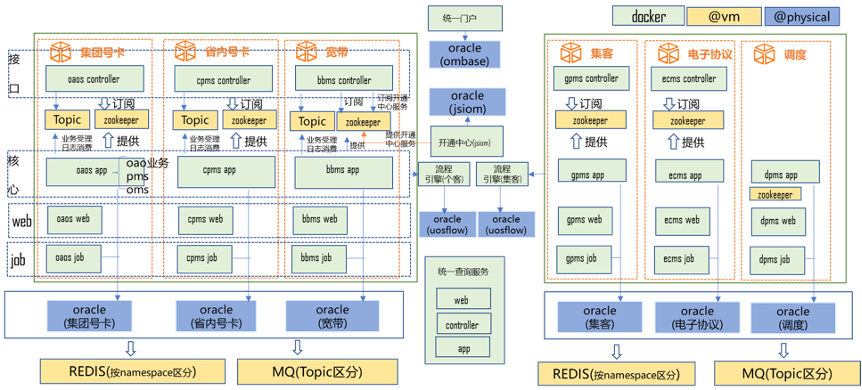 - 基础设施层:订单中心运行于虚拟化的基础设施上,平台PaaS组件运行在虚拟机上,业务应用运行在容器上。