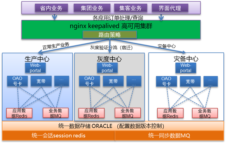 - 应用客户端:多渠道多类型的客户端访问请求,先通过Nginx再进入订单中心。订单中心内部部署了生产中心、灰度中心和灾备中心,Nginx主要用于多中心之间的切换。