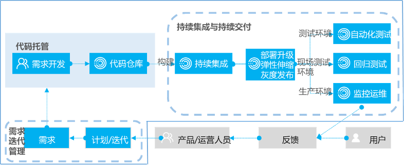 引入DevOps研运一体化工具,实现需求管理、迭代计划、源代码管控、源代码编译打包、静态检测、生成镜像、自动化测试、持续发布部署、全栈监控、自动化运维的研发运维全流水线的工具支撑,实现业务系统的敏捷研发、快速发布上线、缩短迭代周期,快速响应客户需求。