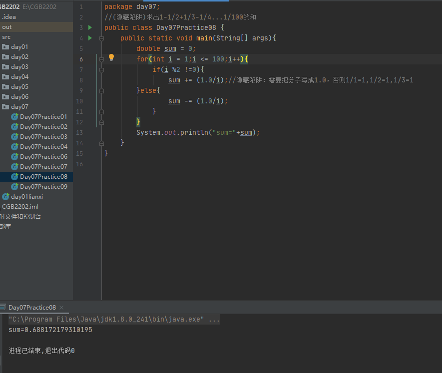 实例: 隐藏陷阱:求出1-1/2+1/3-1/4...1/100的和