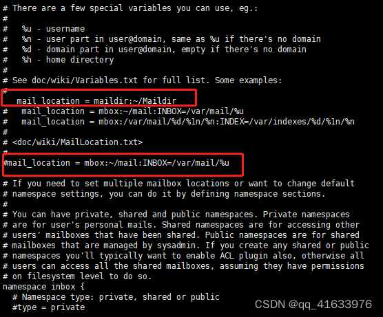 dovecot.conf文件中mail_location与postfix配置文件mail.cf配置文件的home_mailbox存放邮件目录相对应