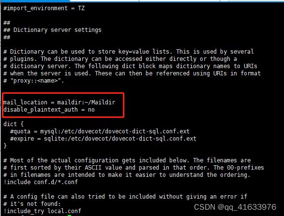 修改mail_location属性为: mail_location = maildir:~/Maildir,修改邮件存储地址信息与postfix地址配置一致