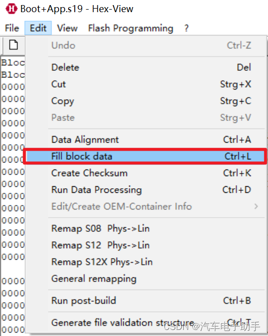 接着在菜单栏中依此选择Edit – > Fill block data,,见图2-10。