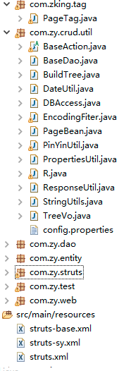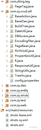 import com.xly.entity.Clz;public class ClzDao extends BaseDao{public List list(Clz clz, PageBean pageBean) throws Exception {// TODO Auto-generated method stubString sql="select * from t_struts_class where 1=1";int cid = clz.getCid();if(cid!=0) {sql+=" and cid="+cid;}return super.executeQuery(sql, Clz.class, pageBean);}public void add(Clz t ) throws Exception {// TODO Auto-generated method stubString sql="insert into t_struts_class values(?,?,?,?) ";super.executeUpdate(sql, t,new String[] {"cid","cname","cteacher","pic"});}public void del( Clz t) throws Exception {// TODO Auto-generated method stubString sql="delete from t_struts_class where cid=?";super.executeUpdate(sql, t,new String[] {"cid"});}public void edit( Clz t) throws Exception {// TODO Auto-generated method stubString sql="update t_struts_class set cname=?,cteacher=?,pic=? where cid=?";super.executeUpdate(sql, t,new String[] {"cname","cteacher","pic","cid"});}