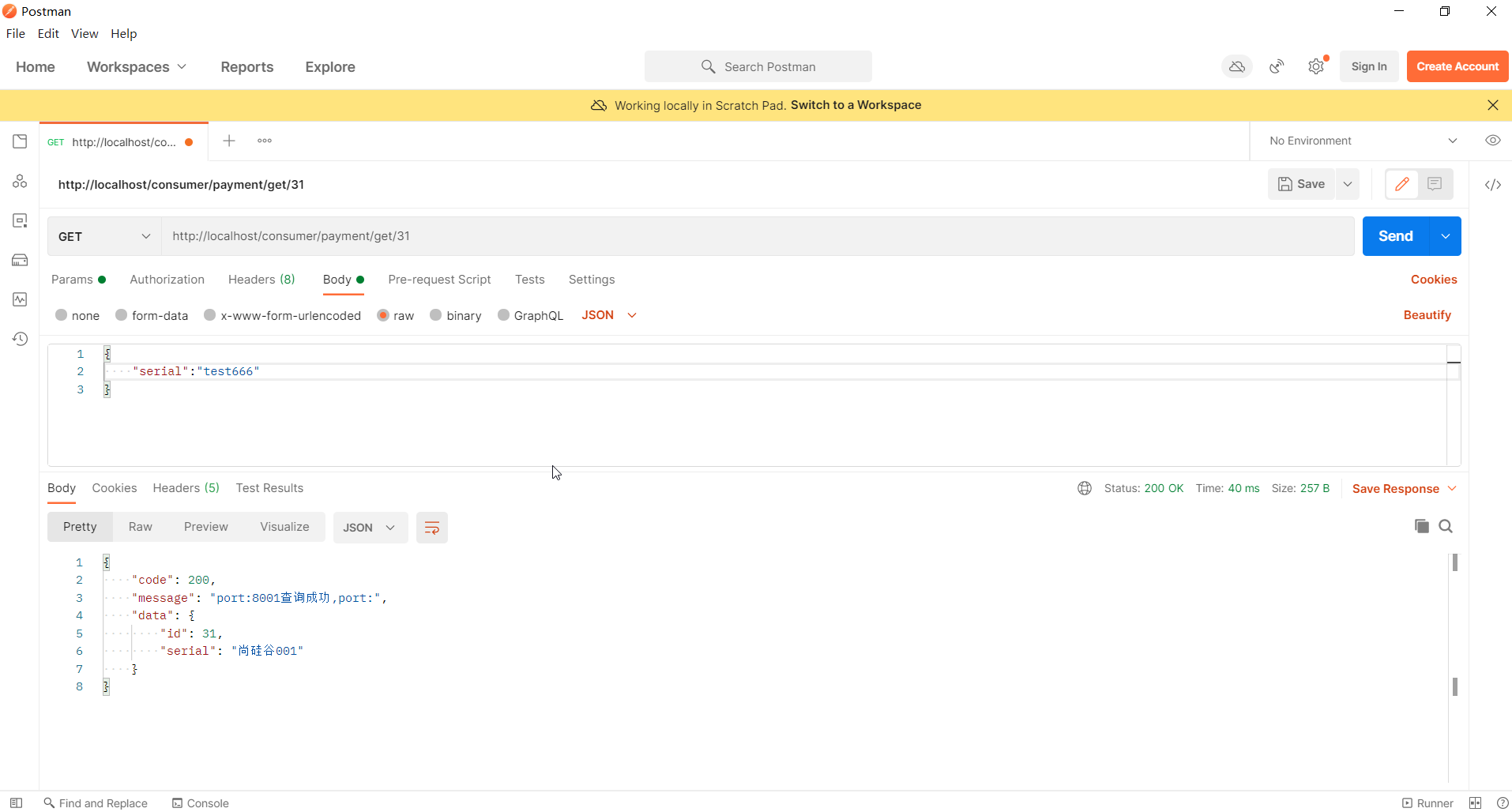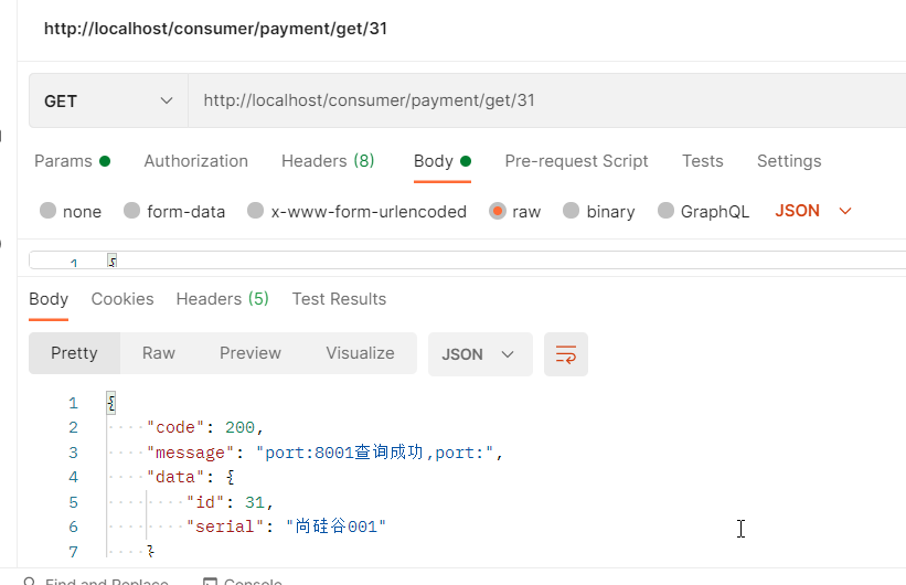 //public static final String PATH = "http://localhost:8001";//修改接收请求地址: 从7001订阅服务,获取三个实例 public static final String PATH = "http://CLOUD-PAYMENT-SERVICE";@RequestMapping("/consumer/payment/get/{id}")public CommonResult get(@PathVariable("id") Long id){CommonResult commonResult = restTemplate.getForObject(PATH + "/payment/get/" + id, CommonResult.class);System.out.println("commonResult = " + commonResult);return commonResult;}