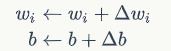将权重项和偏置项初始化为0,然后利用感知器规则迭代wi和b,直到训练完成: