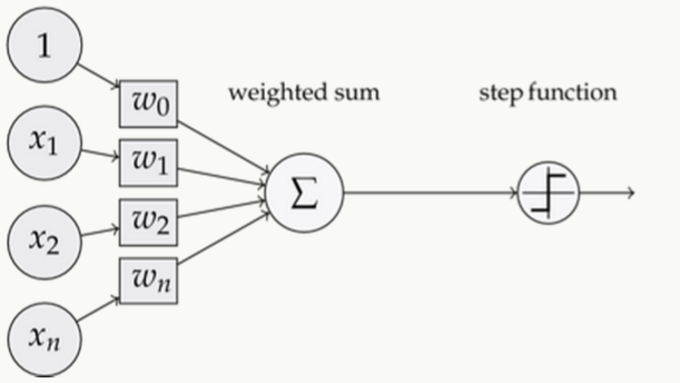 - 输入权值:一个感知器可以接收多个输入,即{x1,x2,...,xn},每个输入上有一个权值wi,还有一个偏置项b(即w0,可以假设该权重对应的输入是1)