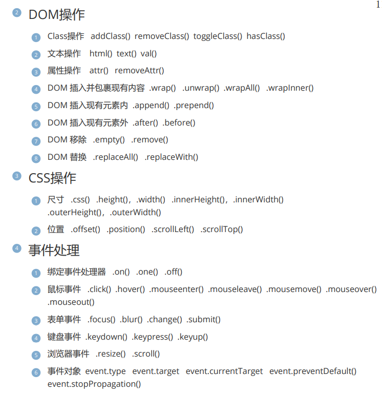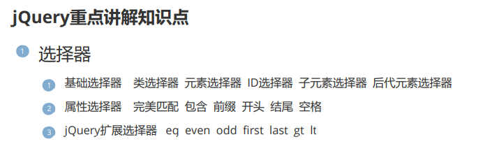 jQuery重点知识点 1 选择器 2 DOM操作 3 CSS操作 4 事件处理 5 遍历 6 动画
