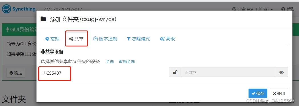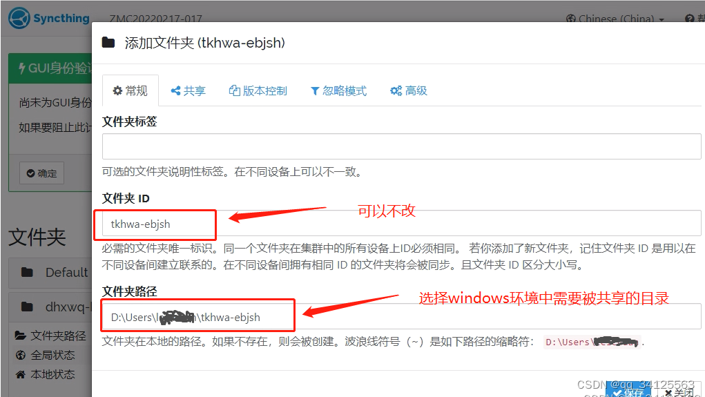 如上图,先操作windows设备对应的web页面,设置待共享目录,建议在“忽略模式”中,添加忽略.git