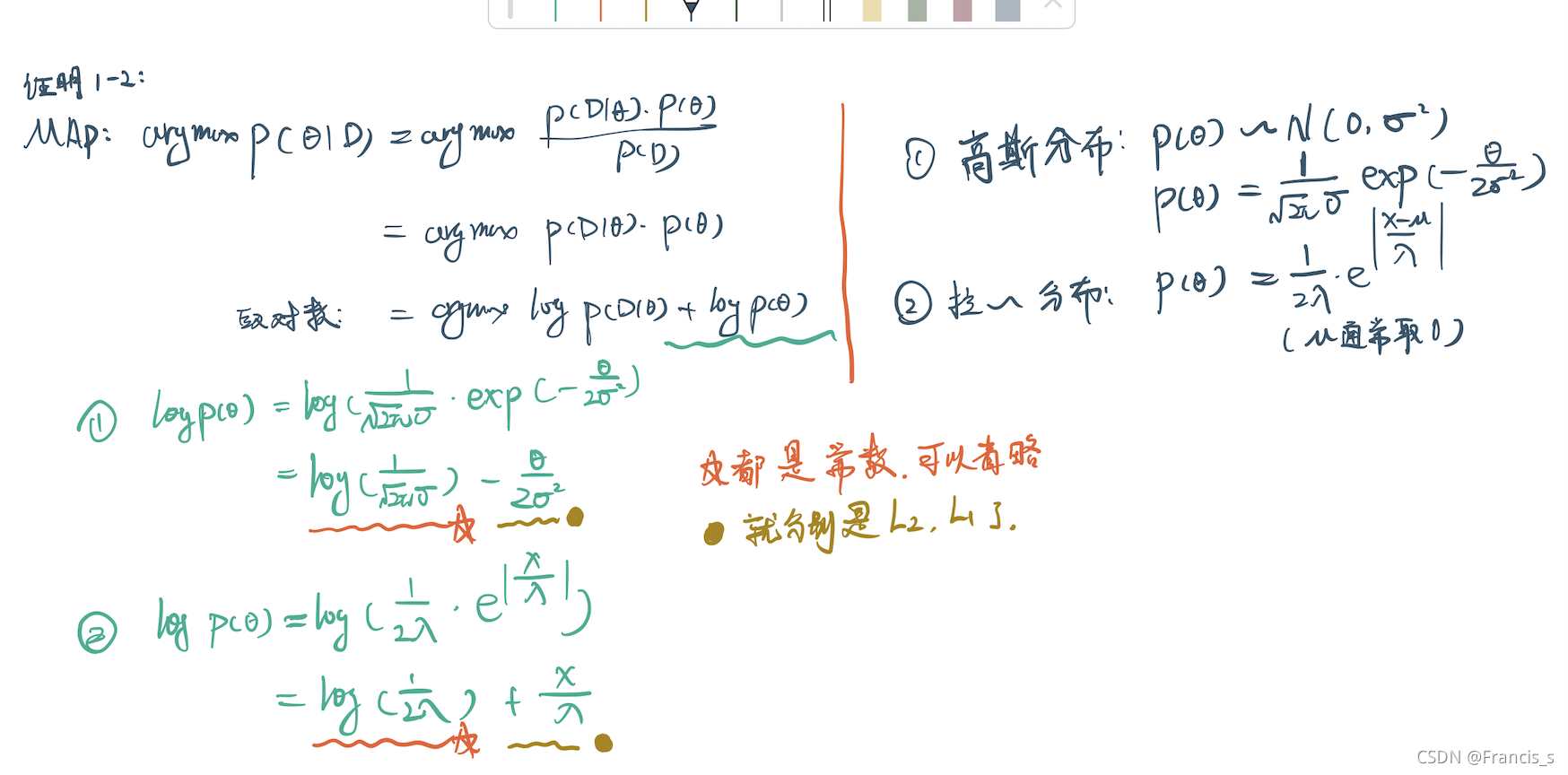 1. 当X服从高斯分布(先验),MAP就等于MLE 加一个 L2 惩罚项