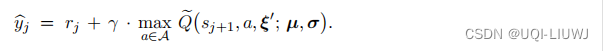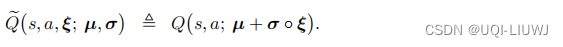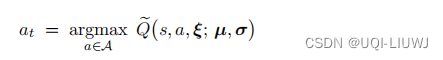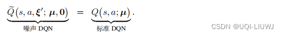 噪声网络可以用于 DQN 。 标准的 DQN 记作 Q ( s, a ; w ) ,其中的 w 表示参数。把 w 替换成 µ + σ ◦ ξ ,得到噪声 DQN :![]()