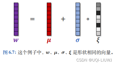 - 此处的 µ、σ、ξ 的形状与 w 完全相同。