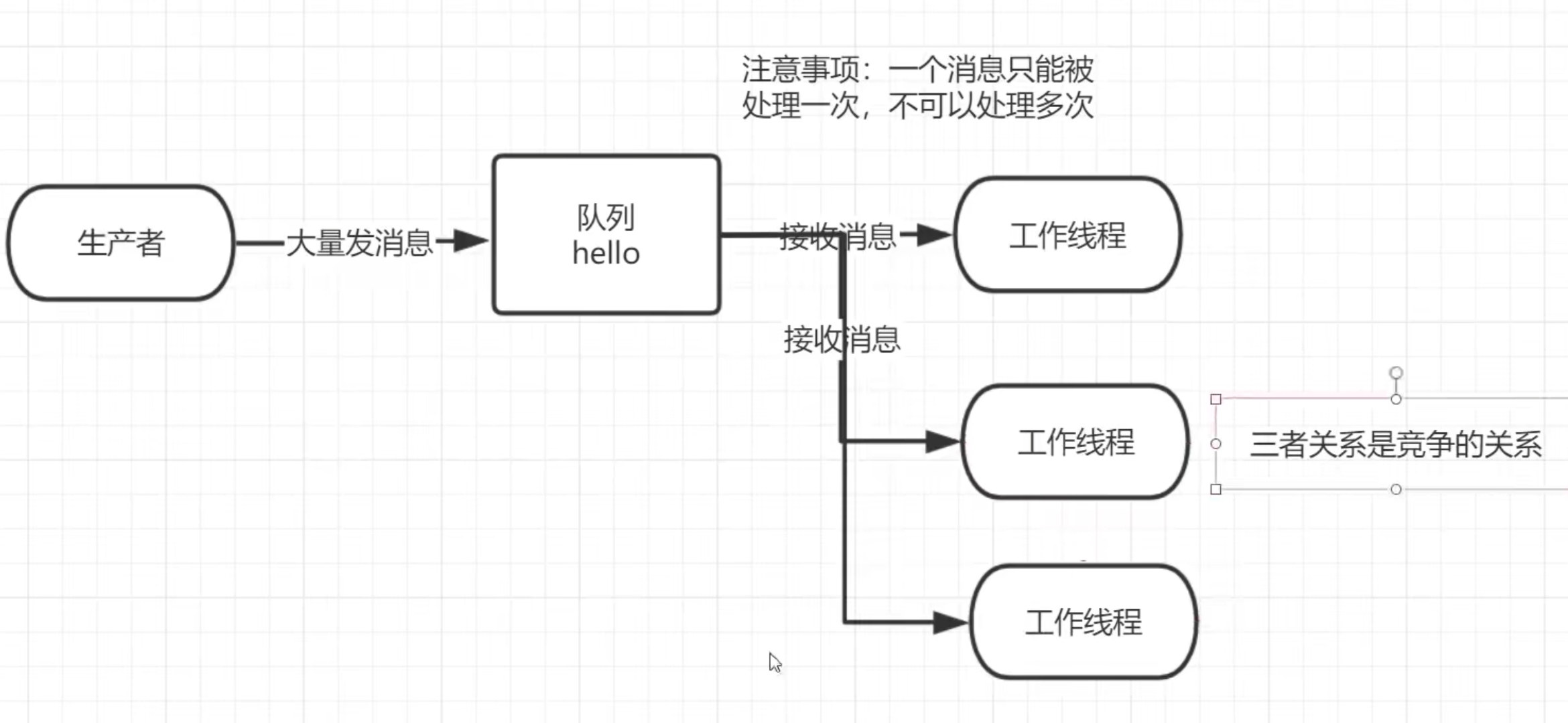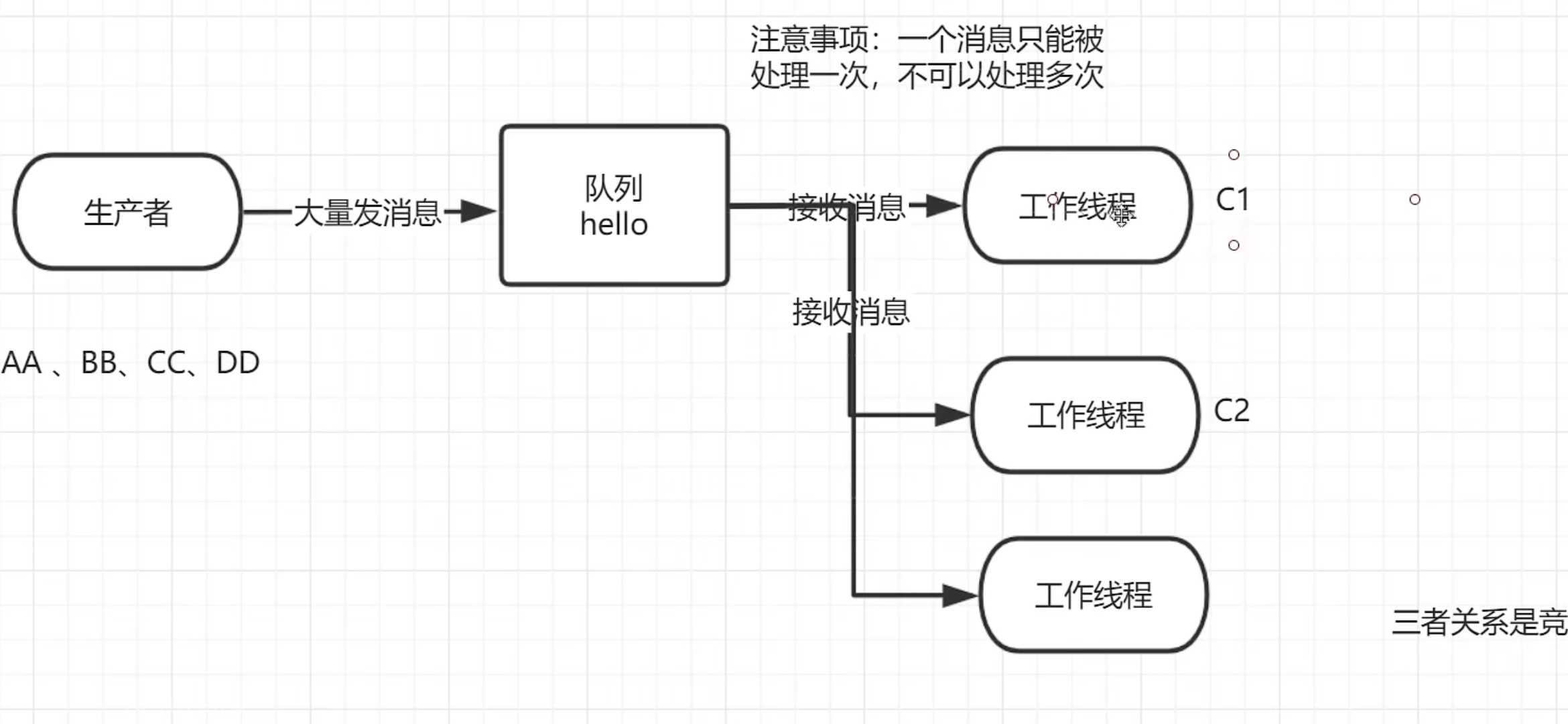在这个案例中我们会启动两个工作线程,一个消息发送线程,我们来看看他们两个工作线程