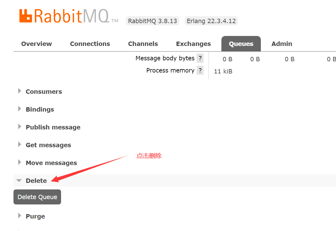 但是需要注意的就是如果之前声明的队列不是持久化的,需要把原先队列先删除,或者重新创建一个持久化的队列,不然就会出现错误
