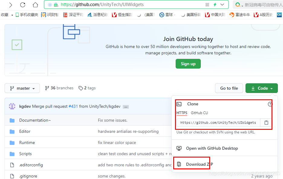 2、可以 clone 或者 Download zip 下载最新的 UIWidgets