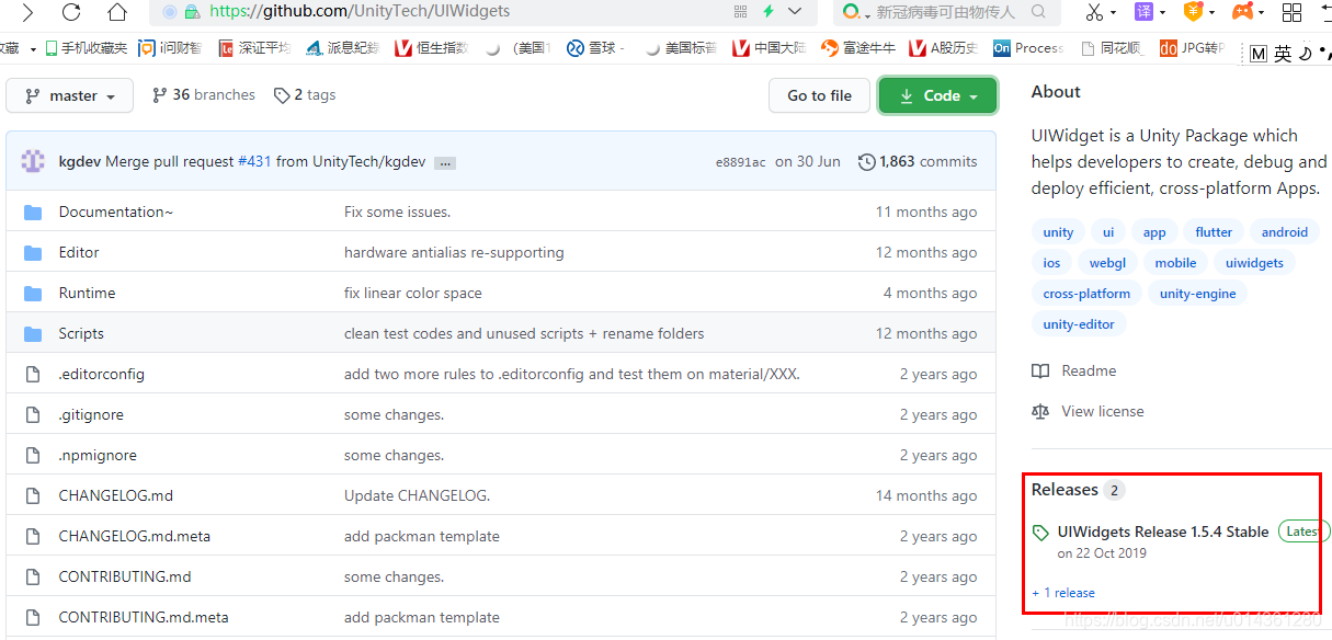 3、也可以点击下载 UIWidgets 的 Release 发布的稳定版本