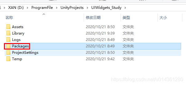 2、找到新建工程的目录的 Packages 文件夹