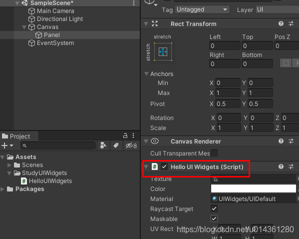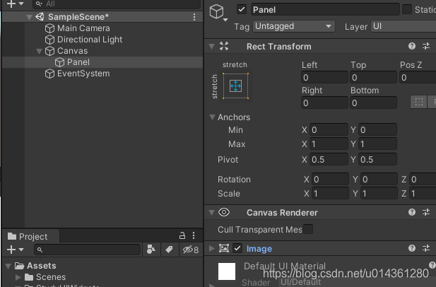 1、在场景中添加一个 Panel