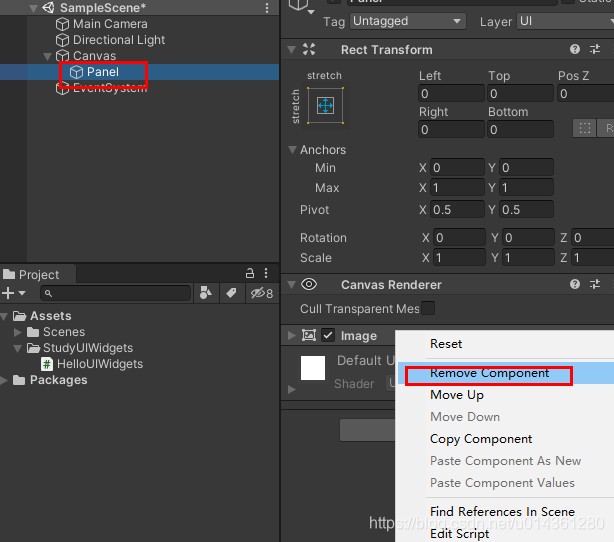 3、移除 Panel 上的Image