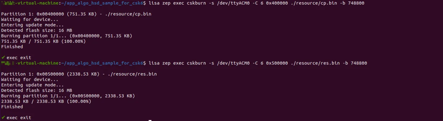 下载完应用程序后,我们需要将算法运行所需要的资源进行烧录,执行下面的命令,下载资源文件: