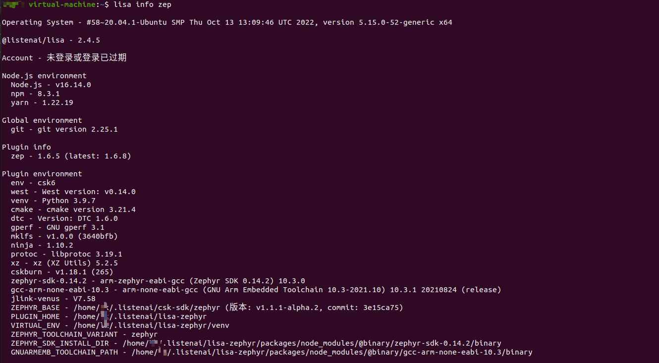 curl -o-https://cdn.iflyos.cn/public/cskTools/lisa-zephyr-install.sh| bash - 检查开发环境