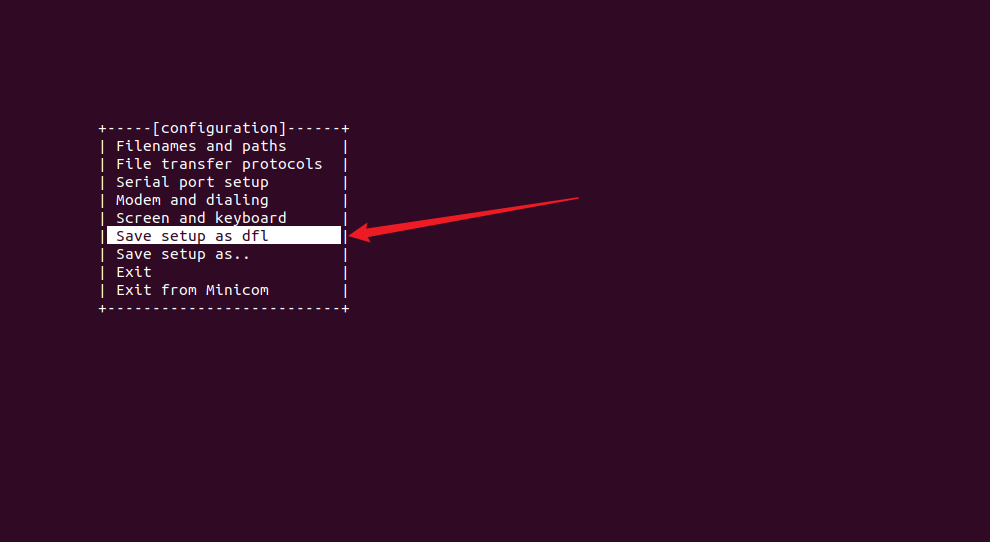 - 按一下 A 键,修改 Serial Device。波特率默认为115200,不需要修改。我这里的串口设备名字为:/dev/ttyACM0。各位以自己本地的名字为主。