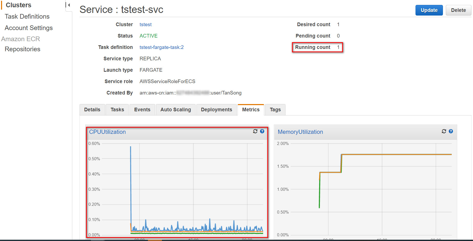 - ”tstest-svc“ 测试用的ECS cluster中service的名称