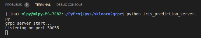 from sklearn.ensemble import RandomForestClassifierclass IrisPredictor(iris_demo_pb2_grpc.IrisPredictorServicer):@classmethoddef get_trained_model(cls):cls._model = joblib.load('IrisClassifier.pkl')return cls._modeldef predict_iris_species(self, request, context):model = self.__class__.get_trained_model()sepal_length = request.sepal_lengthsepal_width = request.sepal_widthpetal_length = request.petal_lengthpetal_width = request.petal_widthresult = model.predict([[sepal_length, sepal_width, petal_length, petal_width]])response = iris_demo_pb2.IrisPredictResponse(species=result[0])return response # not suredef run():server = grpc.server(futures.ThreadPoolExecutor(max_workers=4))iris_demo_pb2_grpc.add_IrisPredictorServicer_to_server(IrisPredictor(), server)server.add_insecure_port('[::]:50055')server.start()print("grpc server start...")print("Listening on port 50055")server.wait_for_termination()if __name__ == '__main__':run()