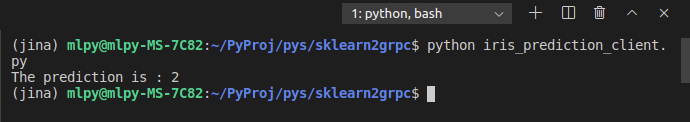 另起一个terminal执行客户端代码,调用gRPC服务,结果如下: