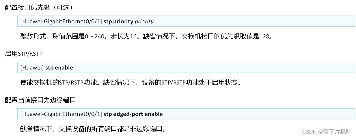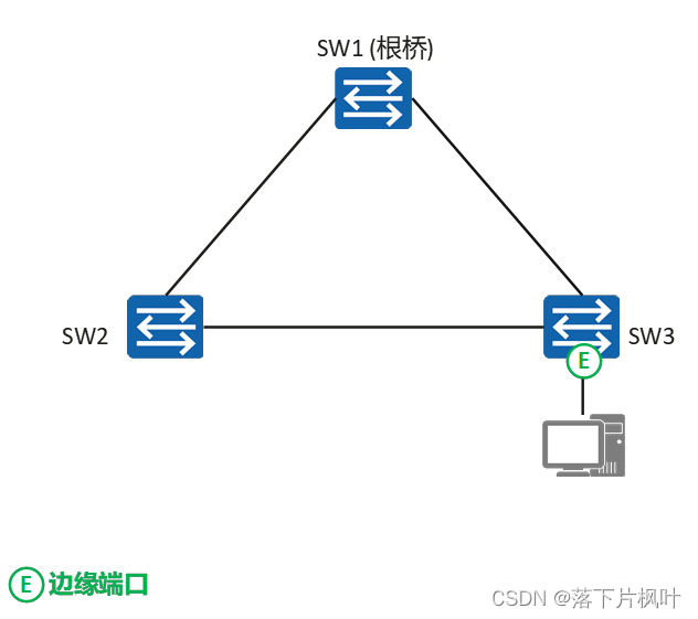 - 在RSTP里面,如果某个端口位于整个网络的边缘,不再与其他交换设备连接,而是直接与终端设备直连,这种端口可以设置为边缘端口。