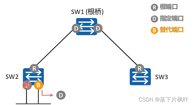 - 因为通过这个Alternate端口连接的网段上必然有个指定端口可以通往根桥。