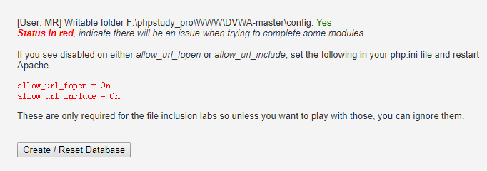 除了改变dvwa路径下php.ini,还要改变extensions下php路径下的php.ini